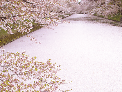秋田を代表する桜の名所。武家屋敷通りのシダレザクラはもちろん、桧木内川堤で見られる全長約2kmの桜のトンネルも必見。夕方からはライトアップも行われるので、昼とは違った幻想的な夜桜も楽しめる。