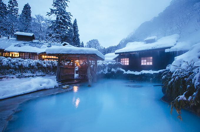 秘湯ファン憧れの温泉郷。山奥に点在する7つの湯宿の湯めぐりが楽しい。